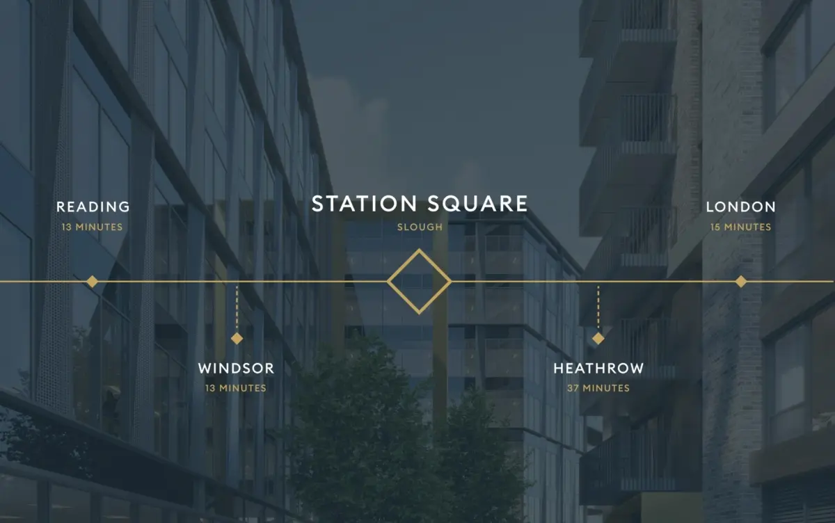 Working with Exton Estates, we crafted an identity for a new development directly adjacent to Slough station. This highly desirable proximity became a guiding thought as we created a logo that visually connects the two areas in a clear, intentional way. A premium aesthetic paired with witty copy gives the brand a distinct personality, helping to elevate Slough’s appeal as a commercial and residential destination just outside London.